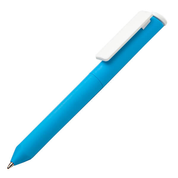 Guľôčkové pero z plastu so stojanom na mobil a otočným mechanizmom, modrá náplň.