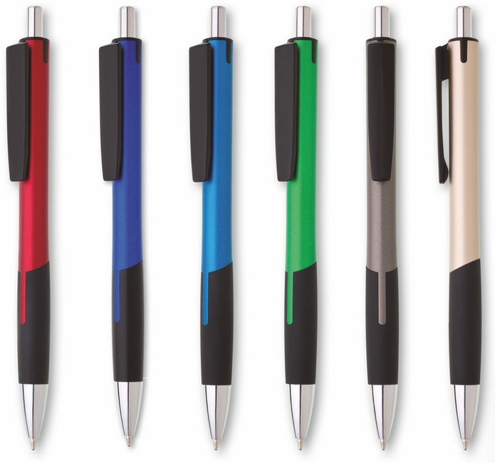 Plastové guľôčkové pero CHANEL s farebným telom a čiernymi doplnkami. Modrá náplň X-20. Kolekcia DESIGN. X-20 (110mm)