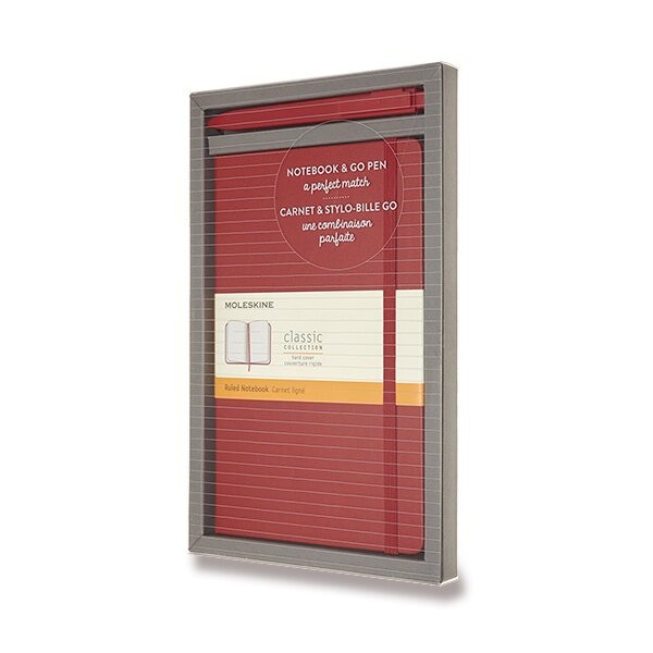Darčeková sada obsahuje linajkový zápisník veľkosti L a guličkové pero GoPen s klipom na prichytenie k zápisníku.