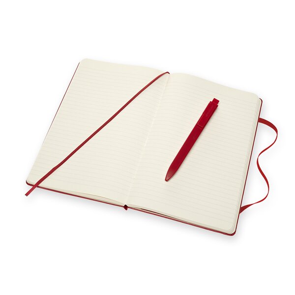Zápisník s pevnou, v chrbte šitou väzbou v kartónových doskách, obopnutý pružnou páskou proti samovoľnému otváraniu. Zápisník je vybavený vreckom na vizitky a drobnosti, ktoré je vyrobené z tkaniny a kartónu, textilnou záložkou a letákom s históriou MOLESKINE. Gramáž papiera 70 g/m², neobsahuje kyseliny.