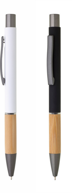 Kovové guľôčkové pero DORIO SOFT s hnedo-čiernymi doplnkami, pogumovaným povrchom a bambusovým úchopom. Modrá náplň- semigel s mikrohrotom. Kolekcia SAVE THE NATURE. Velkoobsahová semigel s mikrohrotem