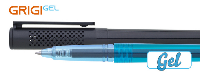Gélové pero GRIGI GEL s viečkom, plnofarebným telom s nepriehľadným viečkom a klipom vhodným na potlač. Gélová náplň je modro píšuca, 800m. Gelová