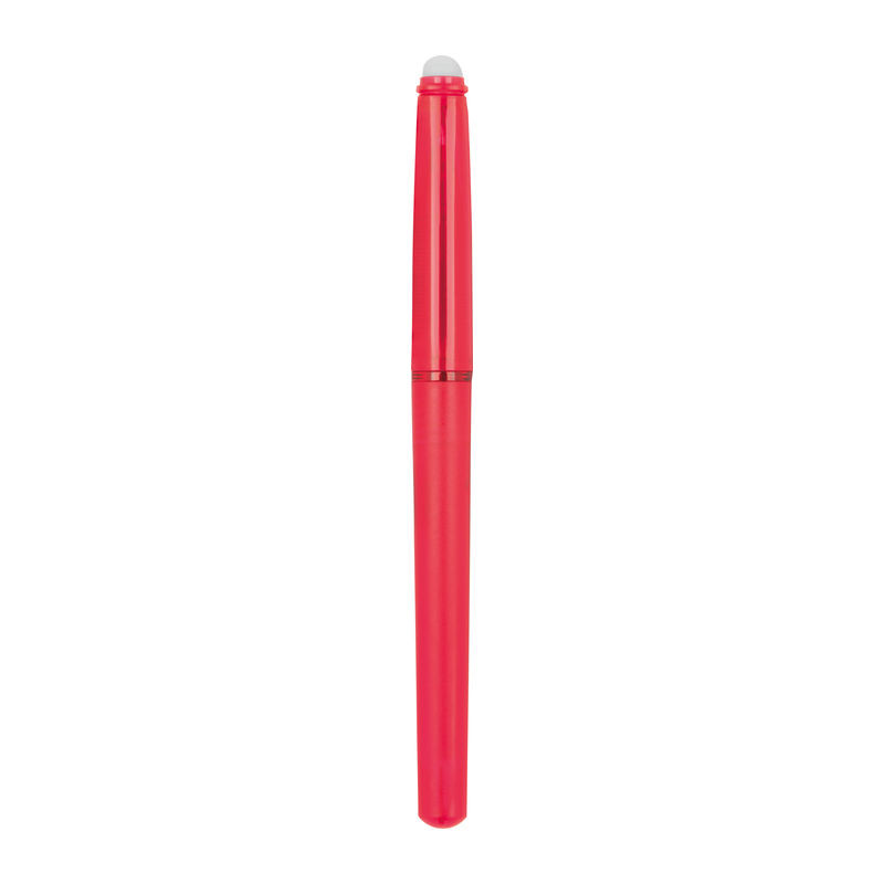 Gélové pero s gumovateľným atramentom z plastu. Možnosťou gumovania, s gumou na vonkajšej strane vrchnáku. Farba pera zodpovedá farbe písania.