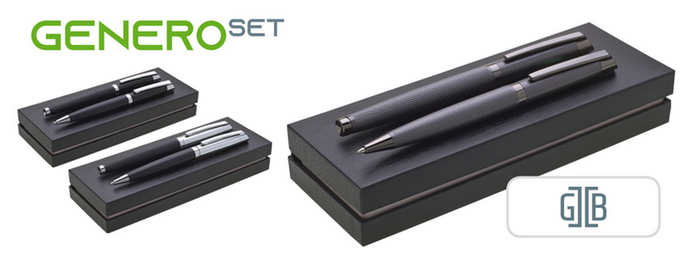 Elegantná sada s perom a rollerom GENERO so striebornými doplnkami v darčekovej krabičke. Laser na perách je lesklý, strieborný. Kolekcia GABRIELIS. KERAMICKÁ. 172x62x28 mm