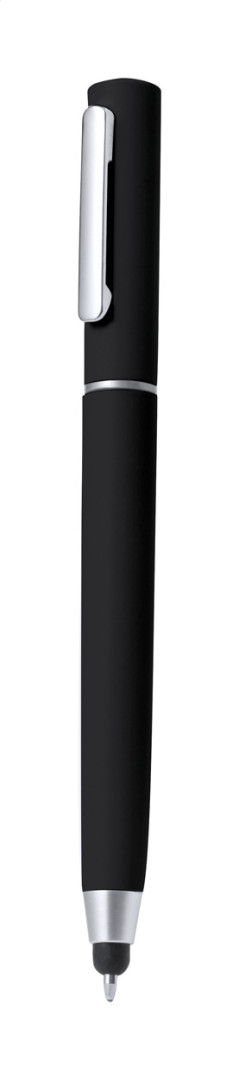 Plastové otočné guličkové pero a dotykové pero so vstavanou sadou na čistenie slúchadiel. S modrou náplňou.