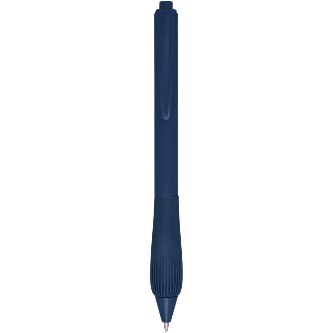 Guľôčkové pero z recyklovaného plastu s pogumovaným telom a rukoväťou z TPR. Farba atramentu: Čierna. Dĺžka písania: 1000 metrov. Rozmer hrotu: 1,0 mm.