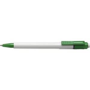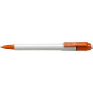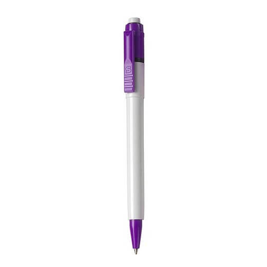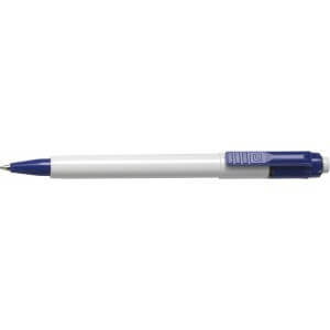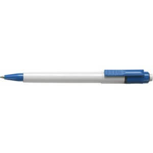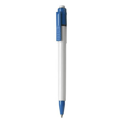 Plastové guľôčkové pero Stilolinea Baron s bielym tubusom, farebným klipom a jumbo náplňou. Modrý atrament.