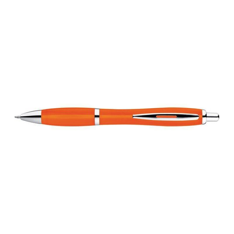 Štýlové plastové guľôčkové pero s modrou náplňou. Radosť písať vďaka protišmykovej úchopnej časti.
