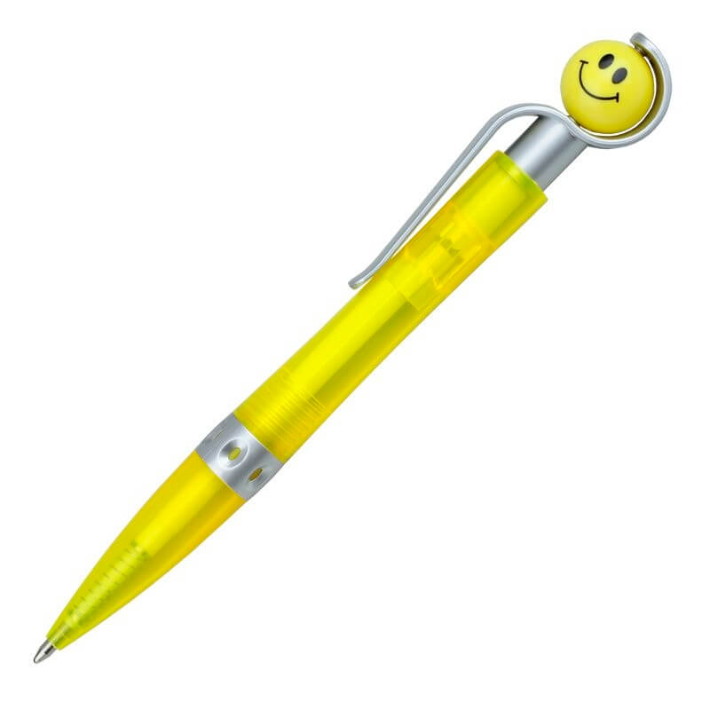 Guľôčkové pero z plastu s otáčajúcim sa smajlíkom, modrá náplň.