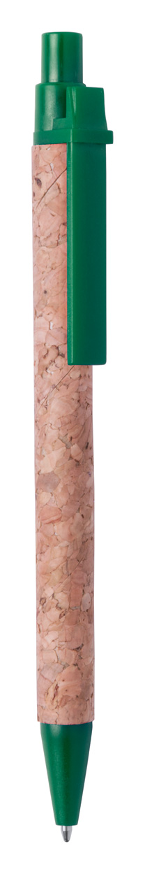 Guľôčkové pero z recyklovaného papiera potiahnuté korkom s plastovými časťami a modrou náplňou.