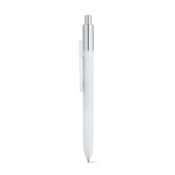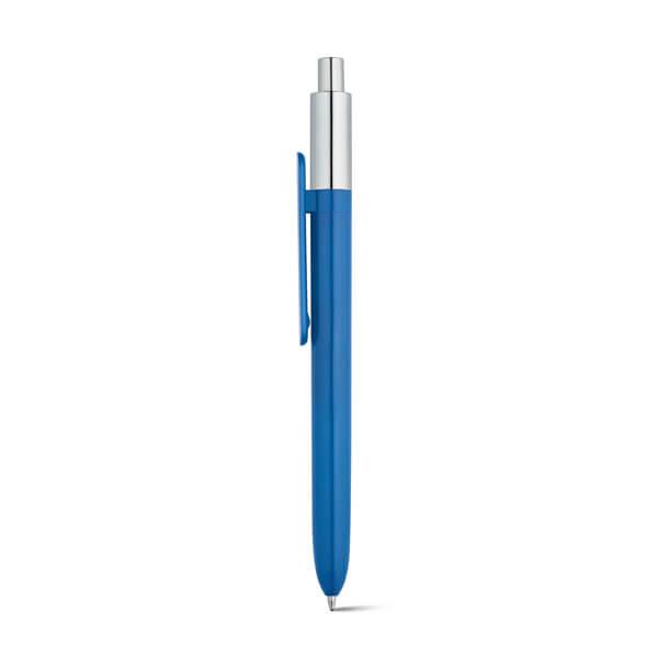 Guľôčkové pero z ABS s lesklým povrchom a lakovanou hornou časťou s chrómovým povrchom. Obsahuje náplň X20 s modrým atramentom. ø11 x 139 mm