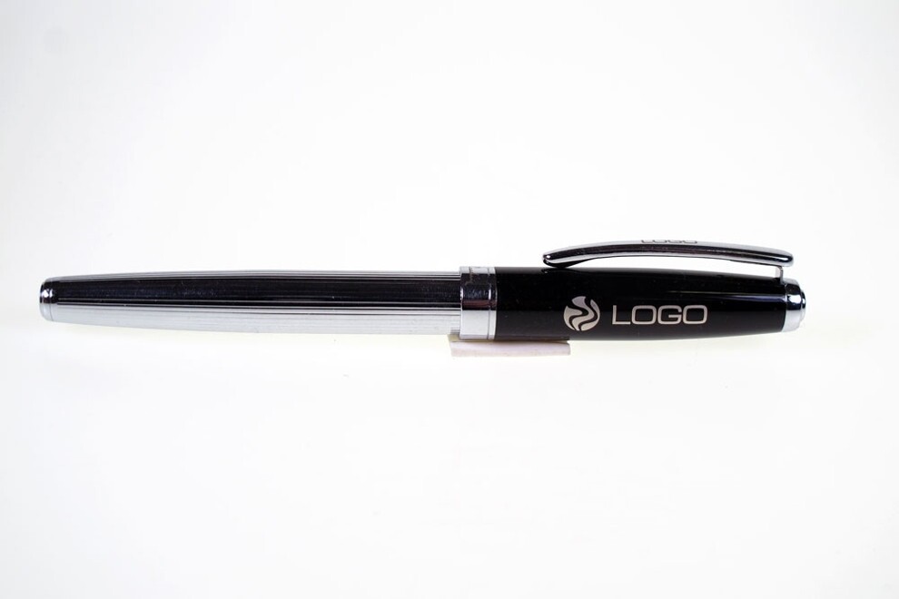 Luxusná súprava kovových písacích potrieb značky Pierre Cardin v masívnom dizajne kombinácia striebornej a čiernej farby s jemným rytím na tele. Sada obsahuje plniace pero a roller, ktorých hrot je chránený krytom v čiernej farbe. Roller obsahuje značkovú nemeckú náplň Schmidt® v modrej farbe s hrotom 0,6 mm a náhradnú čiernu náplň, plniace pero 1ks bombičky s modrým atramentom. Sú balené v luxusnej krabičke Pierre Cardin, dodávané s certifikátom pravosti. Rozmery: plniace pero 1 × 13,7 cm, roller 1 × 13,7 cm, balenie 17,5 × 6,7 × 3,5 cm.