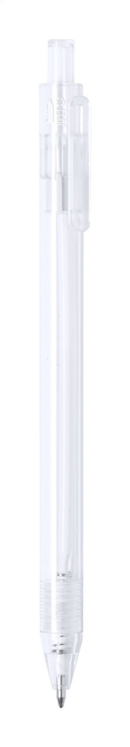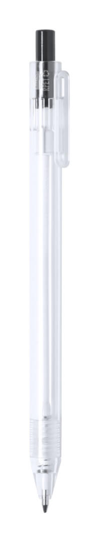 Priehľadné plastové guličkové pero RPET s farebným tlačidlom. S modrou náplňou.