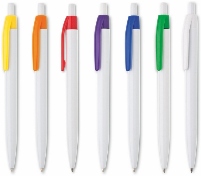 Plastové guľôčkové pero LIDO má biele telo a farebný klip. Modrá náplň X 20-10,6 cm. Kolekcia EVERGREEN. X-20 (106mm)