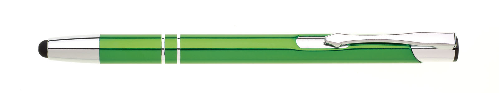 Obľúbené kovové guľôčkové pero ORIN s mäkkým hrotom pre dotykové displeje . Lesklé farebné telo je doplnené o chrómované časti. Modrá náplň veľkoobjemová. Velkoobsahová
