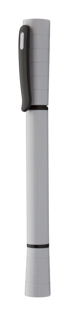 Plastové guličkové pero s LED svetlom. Dodává sa s modrou náplňou a batériou.