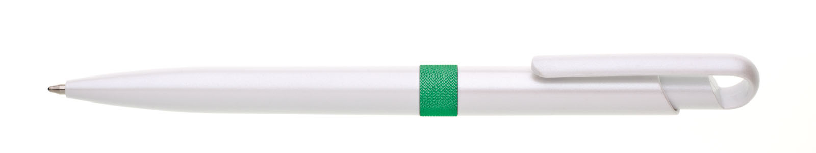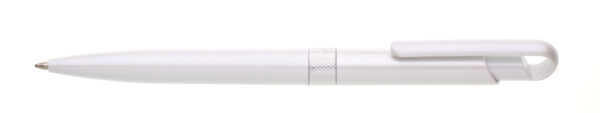 Propiska PERLA má perleťovo biele plastové telo s kovovým strieborným krúžkom. Píše modro a patrí do kolekcie DESIGN.