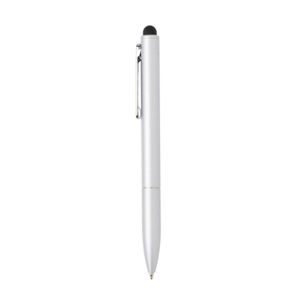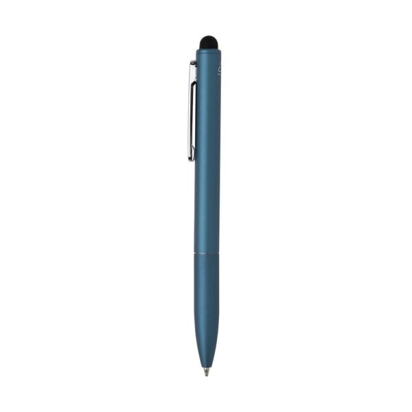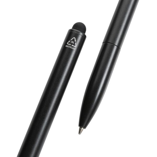 Pero s otočným mechanizmom, šírkou hrotu 1mm, modrým atramentom na písanie až 700 m. Vrátane stylusu. Vyrobené z RCS recyklovaného hliníka. RCS (Recycled Claim Standard) je globálny štandard, ktorý umožňuje overiť použitie recyklovaného materiálu v produkte naprieč celým dodávateľským reťazcom. Celkový podiel recyklátu podľa váhy produktu: 27 %.