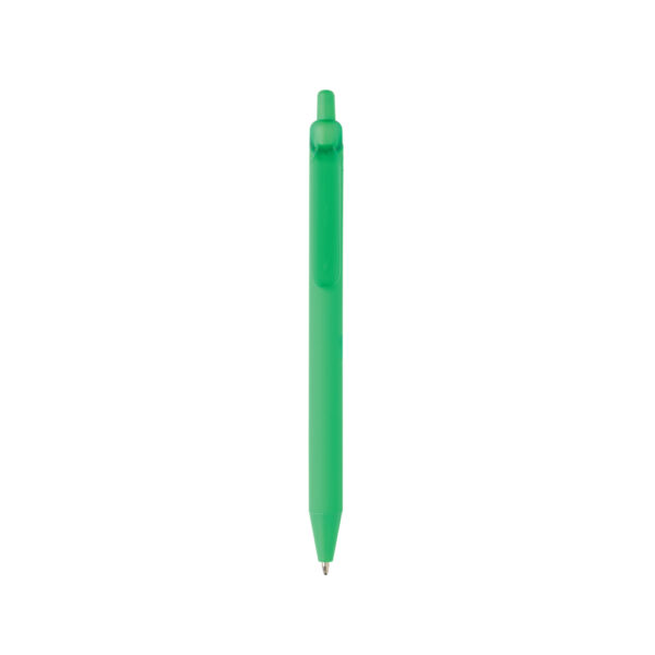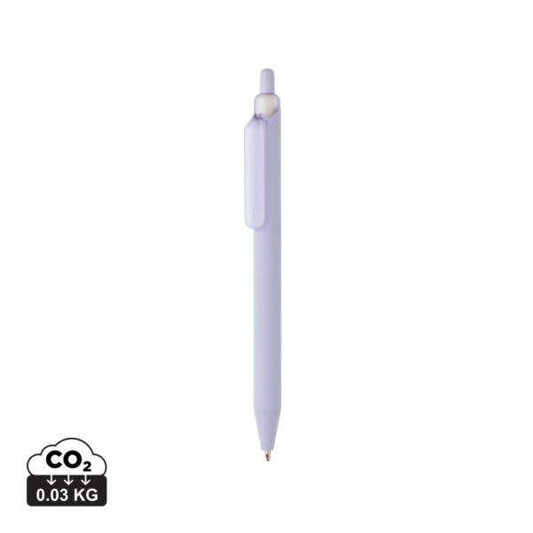 Pero je vyrobené z 91% z recyklovaného ABS a kombinuje odolnosť so štýlom. Je vybavené hladkým pogumovaným silikónovým úchopom pre väčšie pohodlie. Matný povlak na klipe a hrote dodáva elegantný vzhľad, zatiaľ čo modrý atrament vydrží až 1200 metrov. Pero sa ovláda pomocou klikacieho mechanizmu.