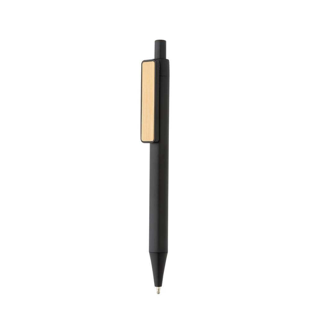 Moderné pero z GRS recyklovaného ABS plastu s bambusovým klipom. GRS (Global Recycle Standard) je globálny štandard, ktorý umožňuje overiť použitie recyklovaného materiálu v produkte naprieč celým dodávateľským reťazcom. Celkový podiel recyklátu podľa váhy produktu: 80%. Nemecká náplň s modrým atramentom Dokumental® na písanie až 1 200m textu. TC gulička pre veľmi príjemné písanie.