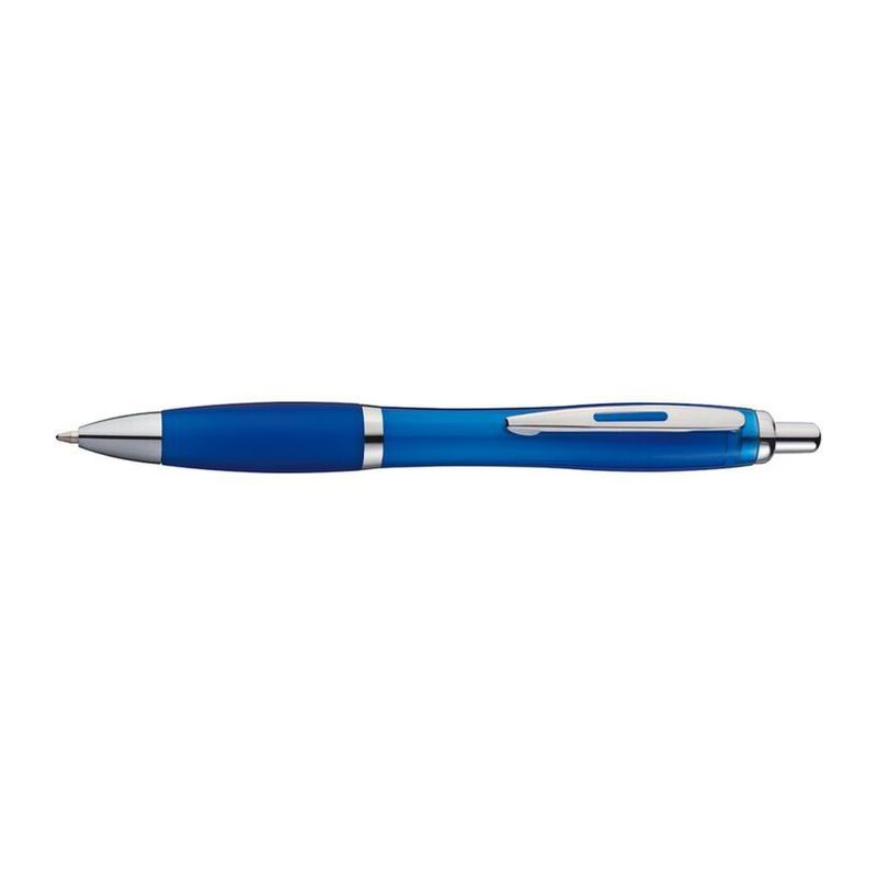 Populárne plastové guľôčkové pero s modrou náplňou, ktoré vďaka svojim doplnkom dodá majiteľovi pohodu pri písaní.
