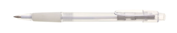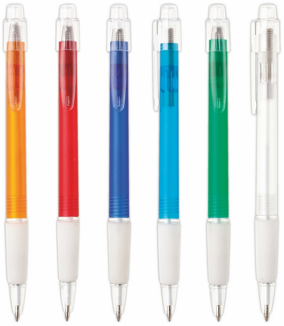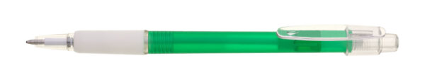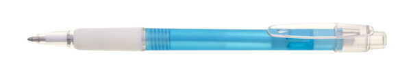 Guľôčkové pero plastové PROSTO s priehľadným farebným telom a pogumovaným úchopom . Modrá náplň X-20. Kolekcia EVERGREEN. X20-106mm