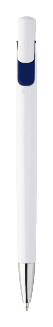 Plastové pero s farebnými doplnkami a chrómovou špičkou. Dodávané s modrou náplňou.
