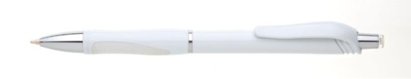 Bílá, plastová propiska s pochromovanými doplňky jako jsou klip, tělo cvakátka a proužek uprostřed těla tužky. Grip je částečně pogumovaný v barvě tužky, stejně jako klip a vrchní část cvakátka. Náplň X20, hrot 1mm. X20-106mm