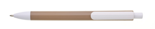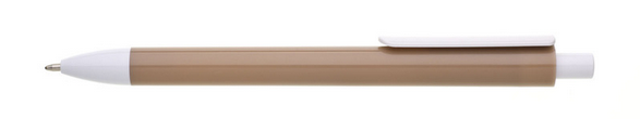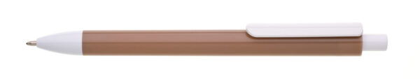 Plastové pero SPILO s kávovo hnedým telom, bielym širokým klipom a doplnkami. Náplň modro píšuca. K propiske je dodávaná nová náhradná náplň, negarantujeme písanie originálnej náplne.