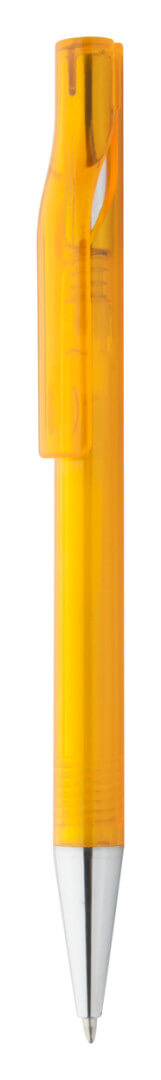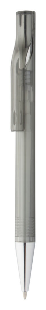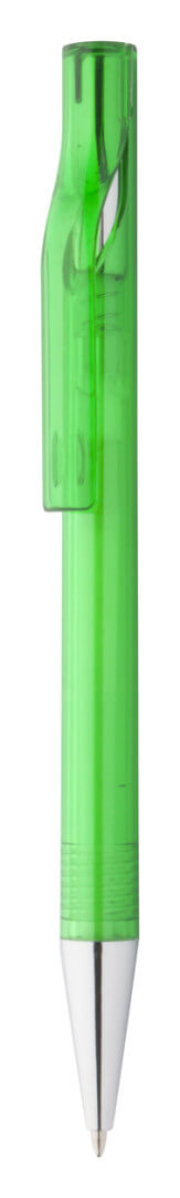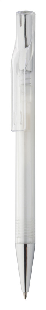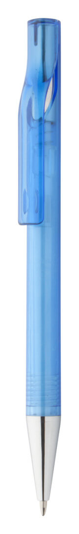 Plastové transparentné farebné guľôčkové pero s chrómovou špičkou a modrou náplňou.
