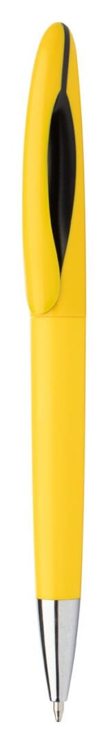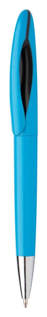 Plastové pero s twist mechanizmom, chrómovou špičkou a modrou náplňou.