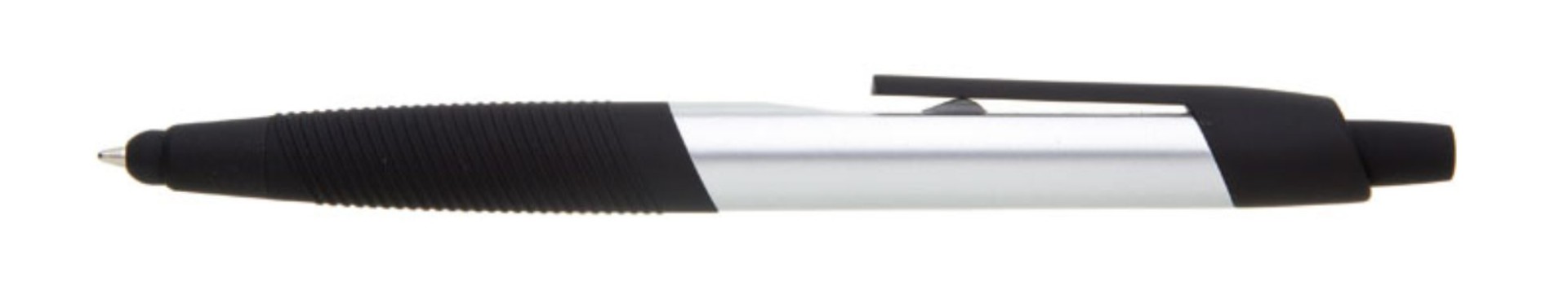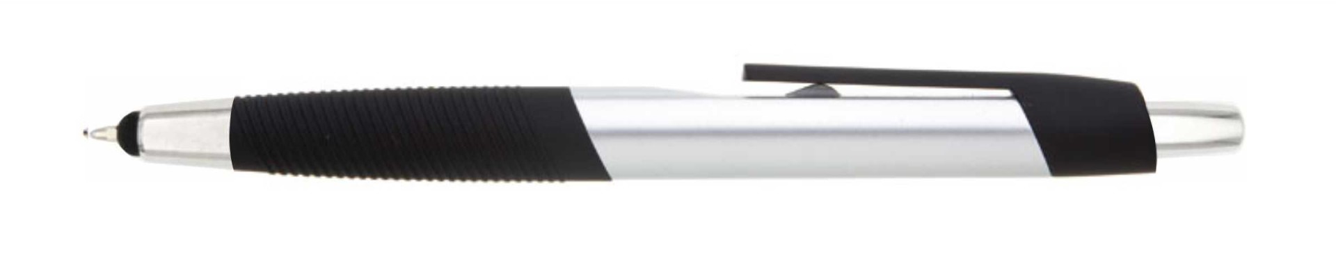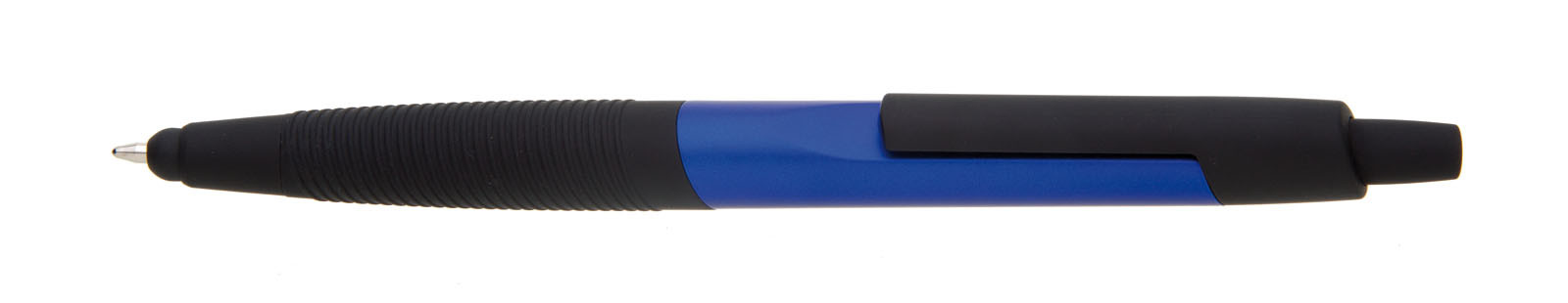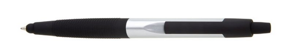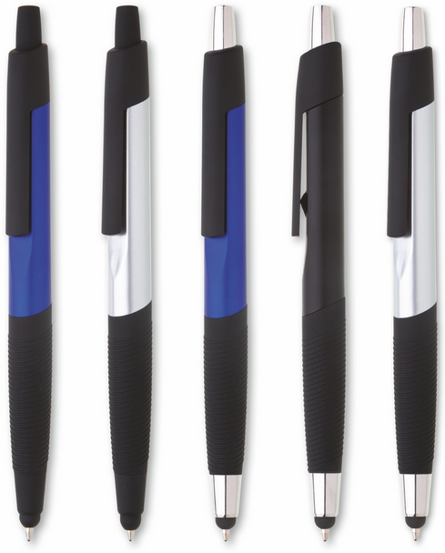 Plastové guľôčkové pero TOCCA s čiernym vrúbkovaným úchopom a klipom. Modrá náplň X-20. X-20 (106mm)