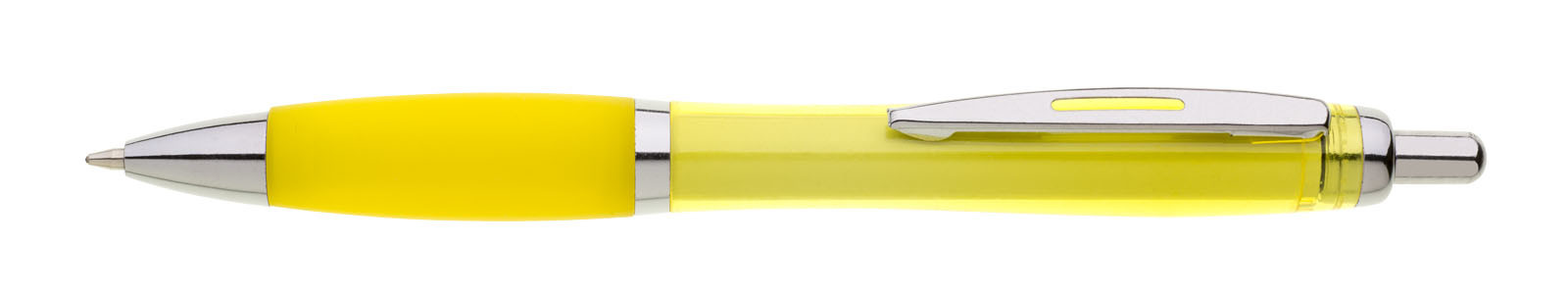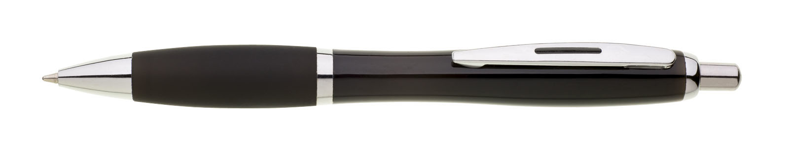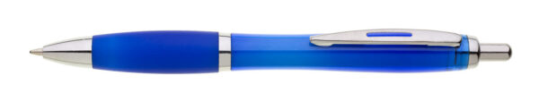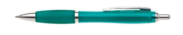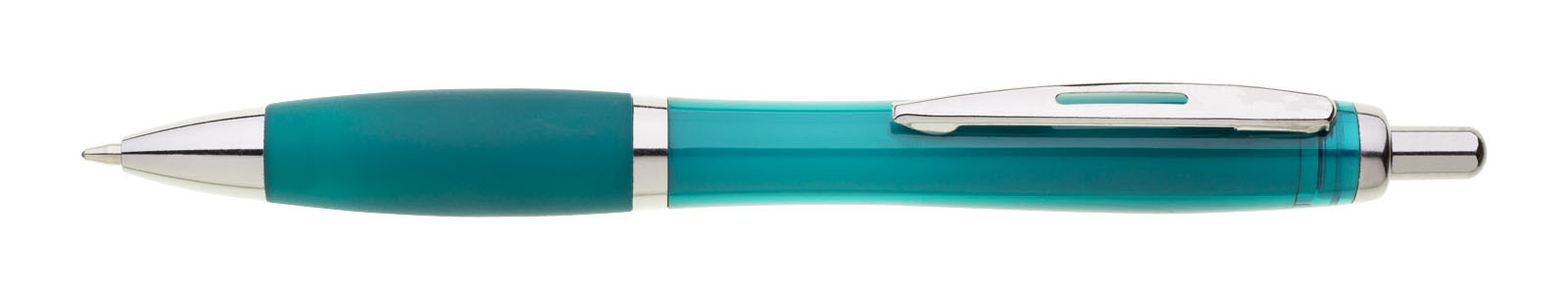 Obľúbené plastové guľôčkové pero ULTA. Celofarebné, transparentné telo, pogumovaný úchop, strieborné doplnky. Modrá náplň veľkoobjemová. Kolekcia EVERGREEN. Velkoobsahová