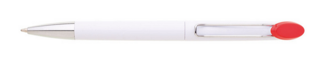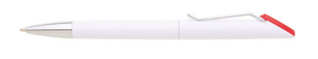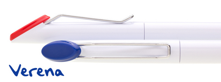Biele plastové guľôčkové pero VERENA s otočným mechanizmom, pochrómovými doplnkami. Farebný držiak klipu je vhodný na epoxy samolepku. Modrá náplň veľkokapacitná. Kolekcia DESIGN. Velkoobsahová
